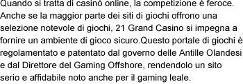 | Casino | Bonus | Payout | Deposito min. | Giocare | |
